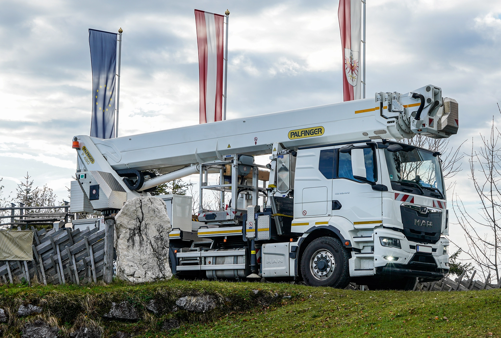 De P 480 behoort tot de Jumbo Class hoogwerkers van Palfinger. Deze klasse kenmerkt zich door een zeer hoge mate van flexibiliteit, gecombineerd met uitstekende prestaties. Dankzij speciaal ontworpen profielconstructies en het gebruik van lichtgewicht materialen blijft het eigengewicht van deze reeks laag. Dat biedt weer ruimte om meer gereedschap, werkaccessoires en materialen op het voertuig mee te nemen. Dankzij de kenmerkende X-jib zijn ook lastig bereikbare werkplekken eenvoudig toegankelijk. Zelfs in complexe situaties kan de werkbak nauwkeurig worden gepositioneerd. De werkbak is 2 × 200 graden draaibaar, waardoor deze eenvoudig in positie kan worden gebracht. Zo kan de volledige werkbakbreedte van 3.88 meter worden benut.